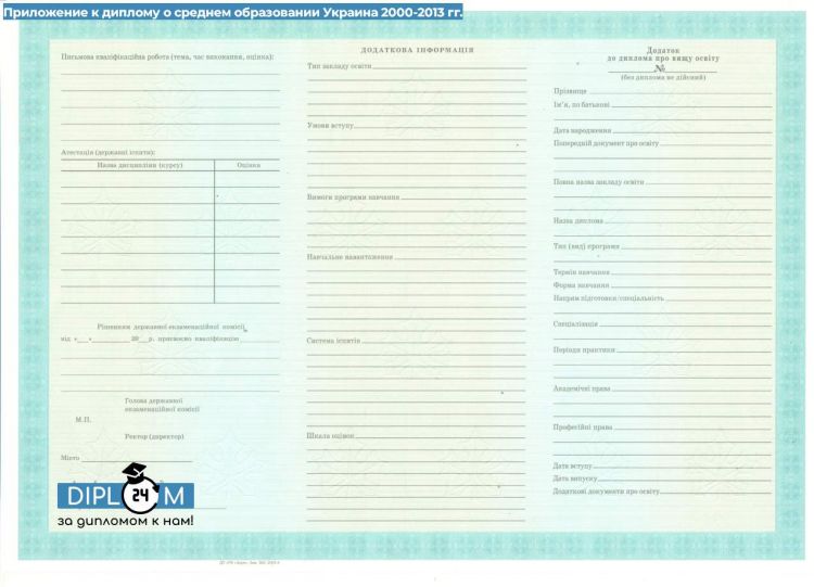Диплом о среднем образовании Украины 2000-2013 гг.